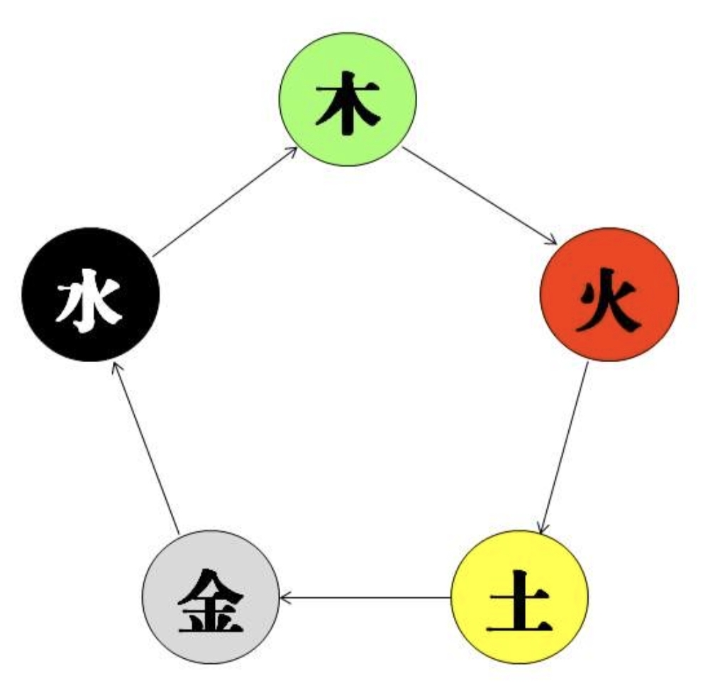 그래서 나무가 있어야만 불이 붙고 불이 타서 땅으로 가는 제가 만들어지고, 그 땅의 기운이 쇠로 만들어 서 발전하고 쇠는 모여서 물이 생성되는 것입니다.